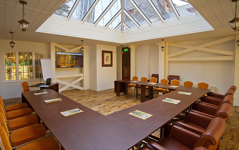 Pentru prezentarile de business vila dispune de o sala de conferinta ultramoderna, cu o capacitate de 40 de locuri, dotata cu Smart Tv Ultra HD, flipchart, consumabile, aer conditionat, prize pentru laptop, WI-FI. :